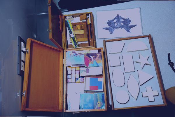It is a projective testing in which ink bloated cards of different kinds are given to the patient.